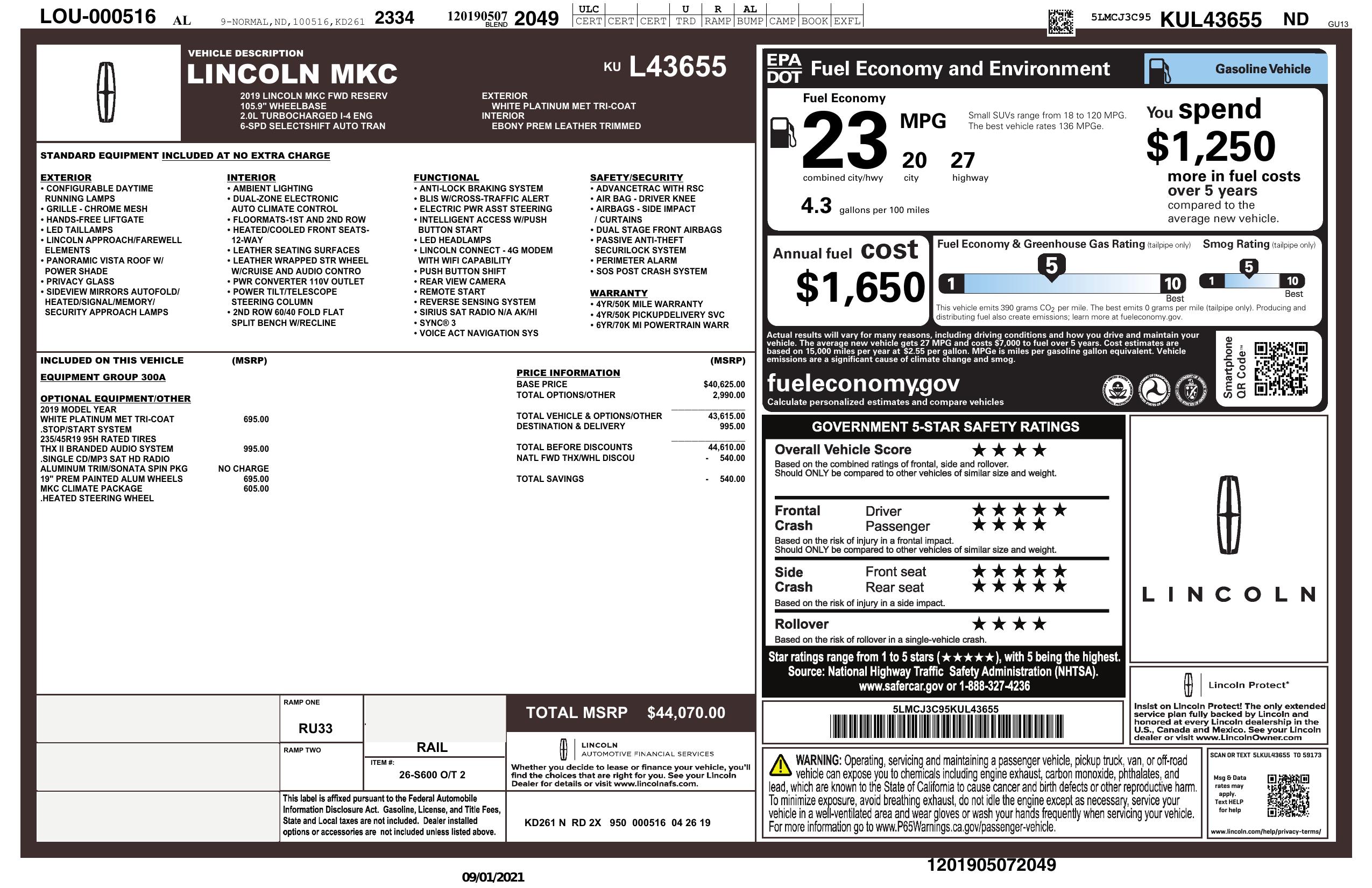Whether you're zipping through city streets or cruising on the open highway, this Lincoln MKC will provide a luxurious and enjoyable driving experience every time. Don't miss out on the opportunity to own this premium vehicle that combines sophistication with practicality. So why wait? Come test drive this 2019 Lincoln MKC today and experience the epitome of automotive excellence.